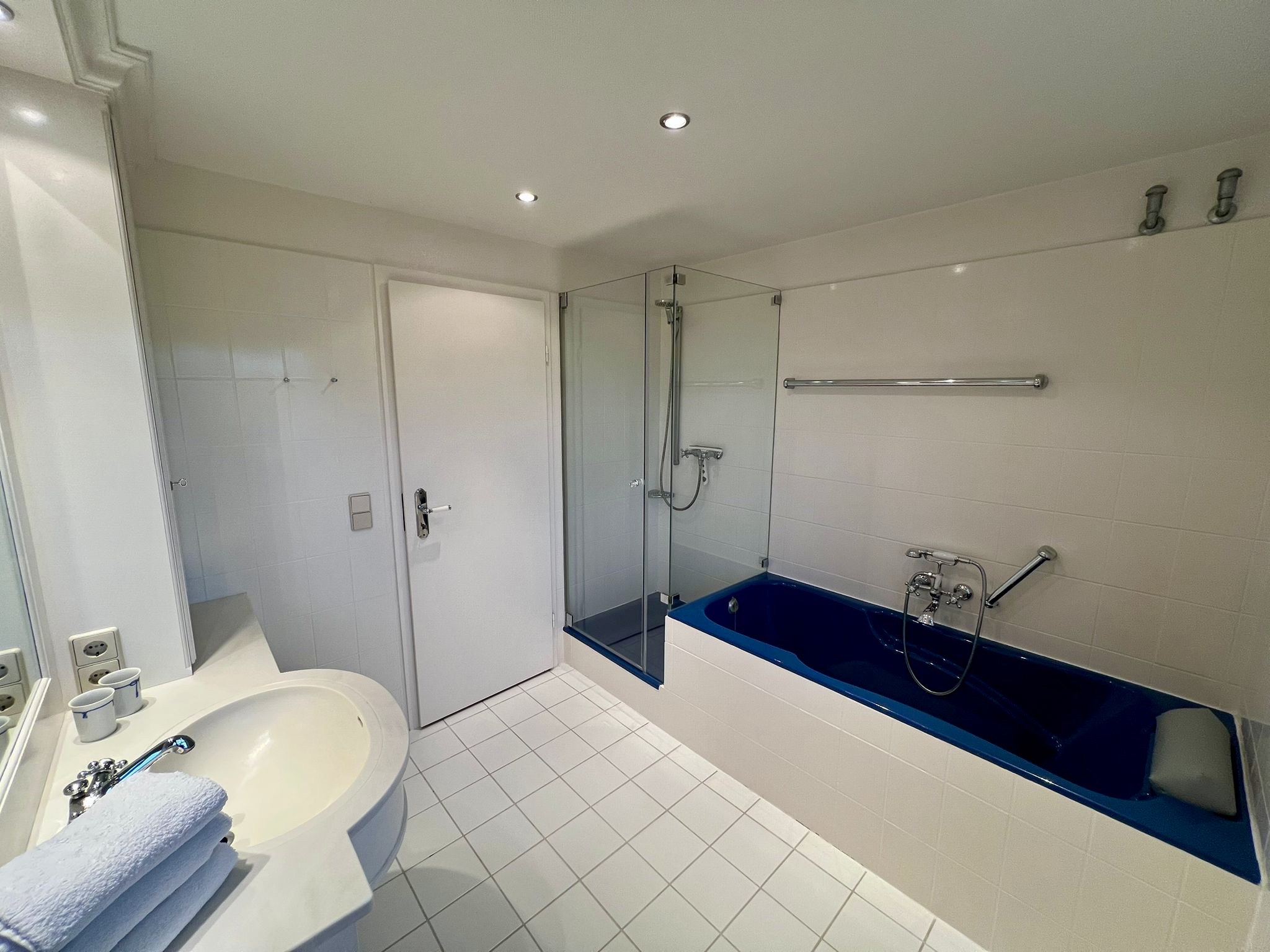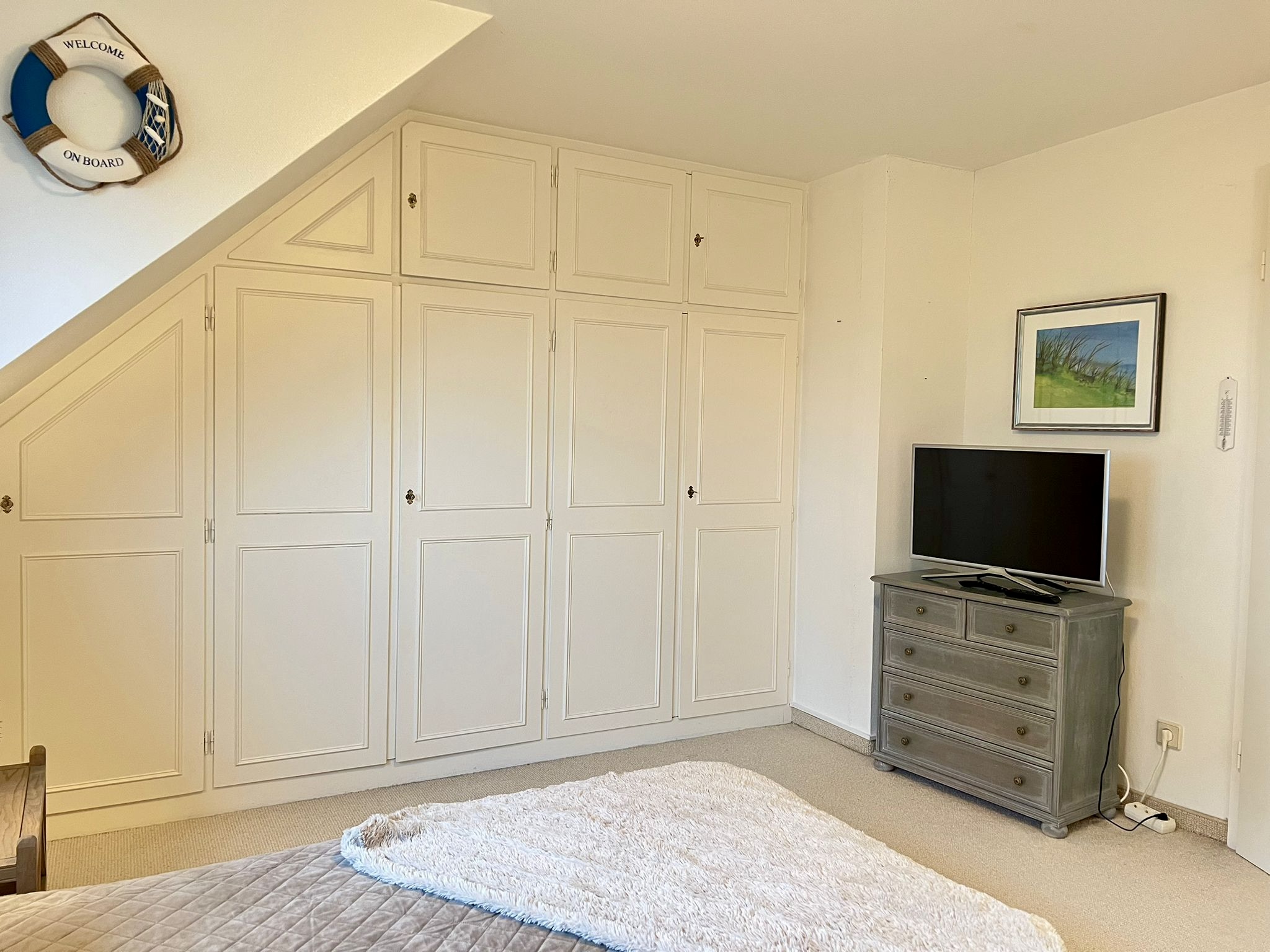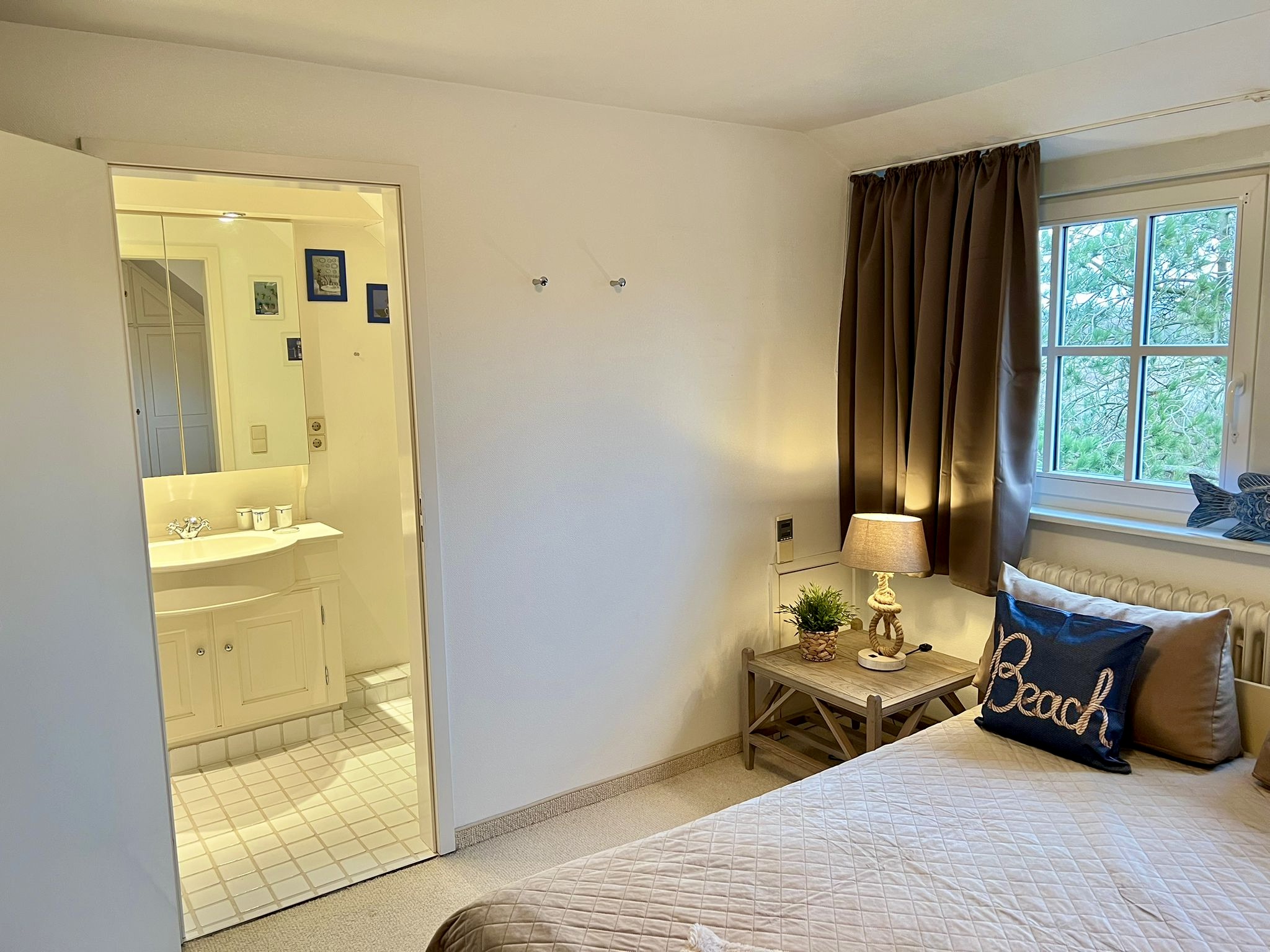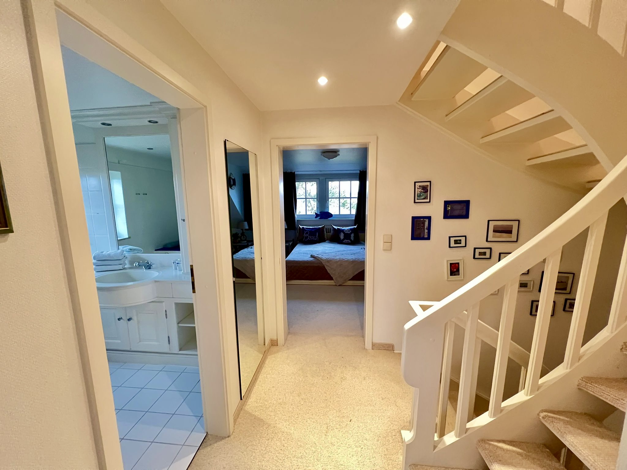 Im Obergeschoss erwarten Sie zwei komfortable Schlafzimmer – jedes mit eigenem Bad. Ein Bad liegt direkt en suite, das zweite ist vom Flur aus zugänglich. Damit genießen alle Gäste Privatsphäre und Komfort.