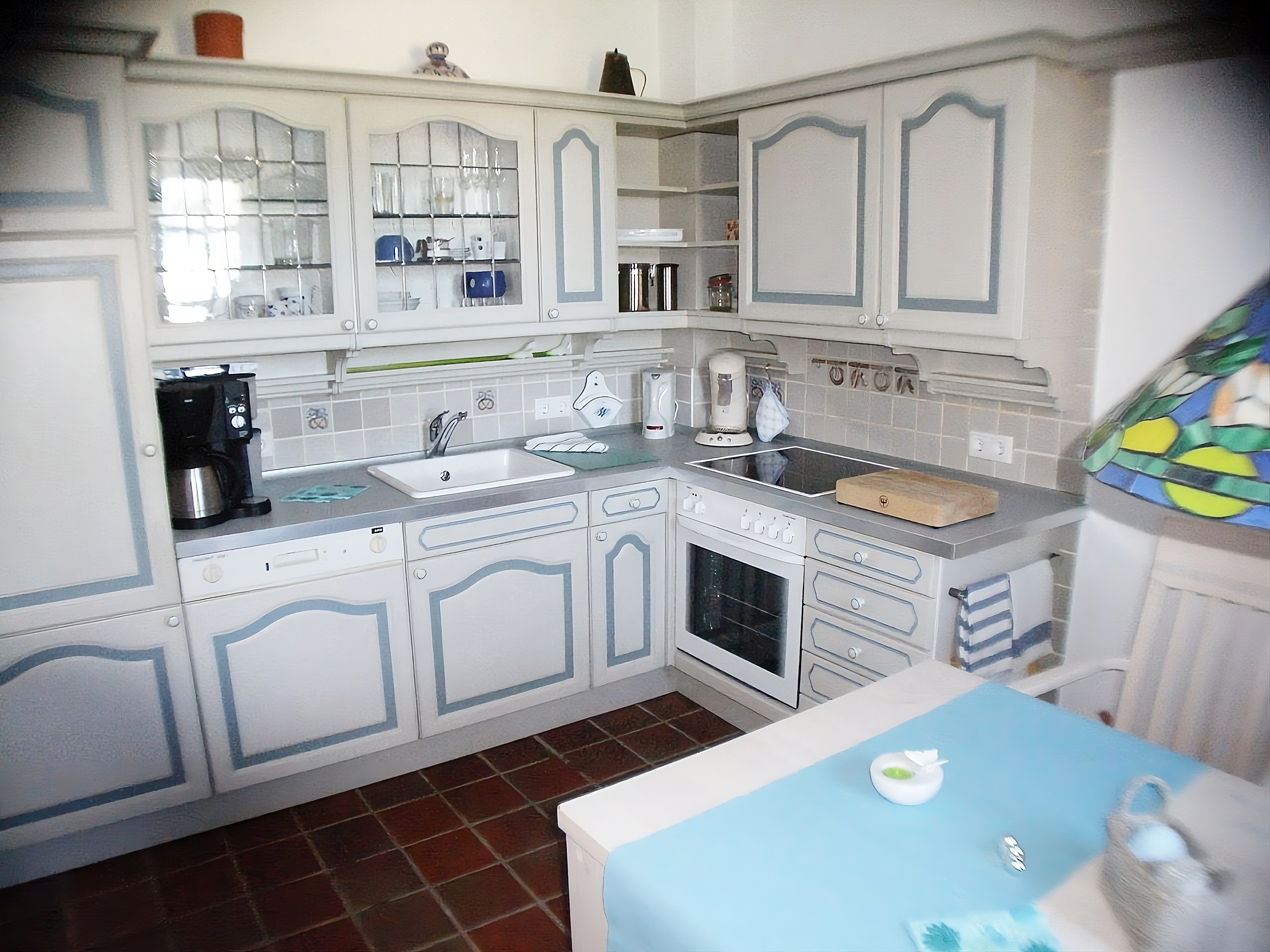 Die separate SieMatic-Küche ist komplett ausgestattet, incl. Mikrowelle, einer Senseo- und einer AEG-Kaffeemaschine. Eine großzügige Sitzecke befindet sich ebenfalls in der Küche.